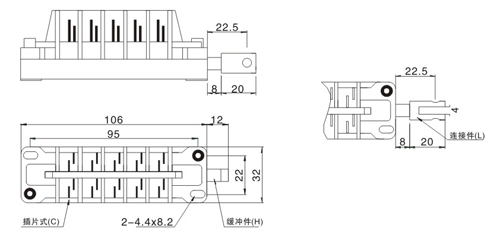 規(guī)格 1、5對觸點,可提供:5常開、4開1閉、3開2閉、2開3閉、1開4閉、5常閉6種不同的結(jié)構(gòu)型式。 2、接線端子為插拔式(C)。 3、(Ⅰ)型:推桿的結(jié)構(gòu)帶連接件(L)。 (Ⅱ)型:推桿的結(jié)構(gòu)帶緩沖件(H)。