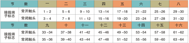注①:帶延時觸頭時,每節只有 1個。Y1:1 個延時觸頭;Y2:2 個延時觸頭;Y4:4 個延時觸頭。