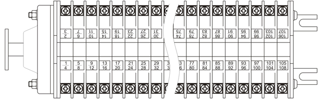 YZF19 系列轉換式延時真空輔助開關的接線端子的標志如下表、圖所示: