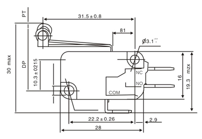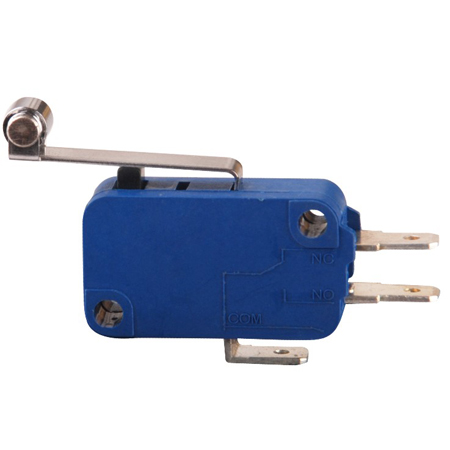 微動開關內具有一組瞬動機構,觸頭采用銀基合金,彈性元件用鈹青銅,機體采用絕緣性能優良的工程塑料制成,具有阻燃增強、耐熱、耐久、安全、可靠性高等特點。接線端子有AMP187(4.8×0.5)、 AMP250(6.3×0.8)、國際4.8×0.8快接端子及焊接端子等多種型式供用戶選擇。