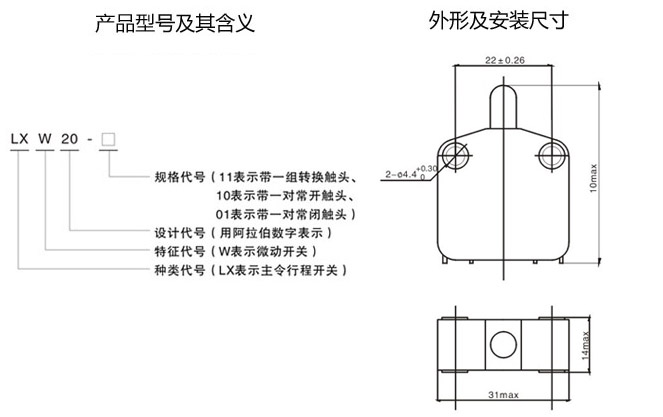 LXW20系列微動開關 LXW20系列微動行程開關是最新一代的升級換代產品。設計合理,觸頭動作靈敏、可靠、精度高、壽命長、外形美觀。各項技術指標均達到進品同類產品的先進水平。產品經國家強制性產品認證試驗合格并獲得(CCC)認證證書。證書號:2003010304087136