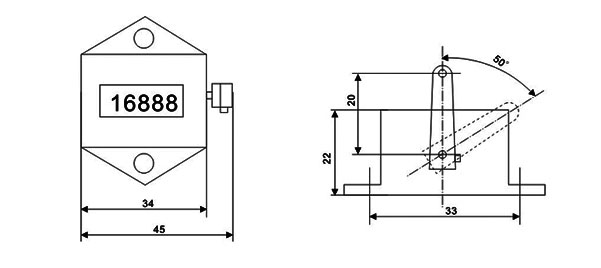 主要技術參數 計數范圍:0~9999 拐臂工作角度:0~50°