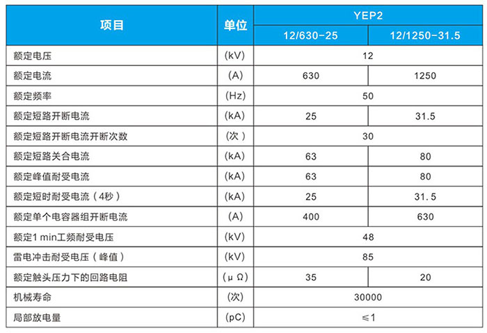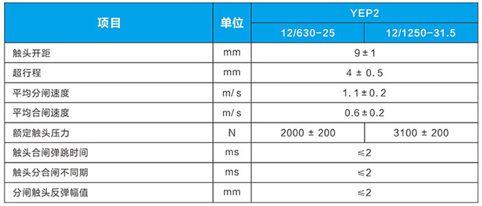 YEP2-12/1250-31.5(275)配套真空開(kāi)關(guān)應(yīng)滿足的機(jī)械參數(shù):